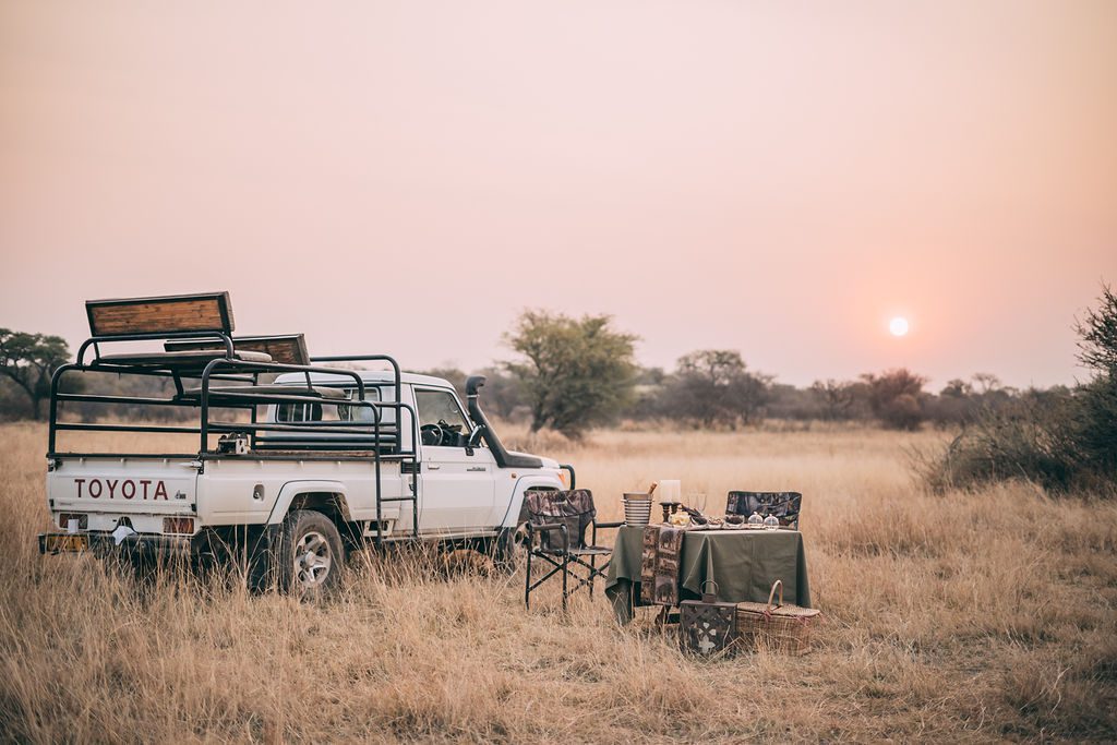 There’s something sacred about African sunsets. Picture yourself at a carefully chosen vantage point where endless Namibian landscape stretches to the horizon, painted in impossible shades of amber and crimson.