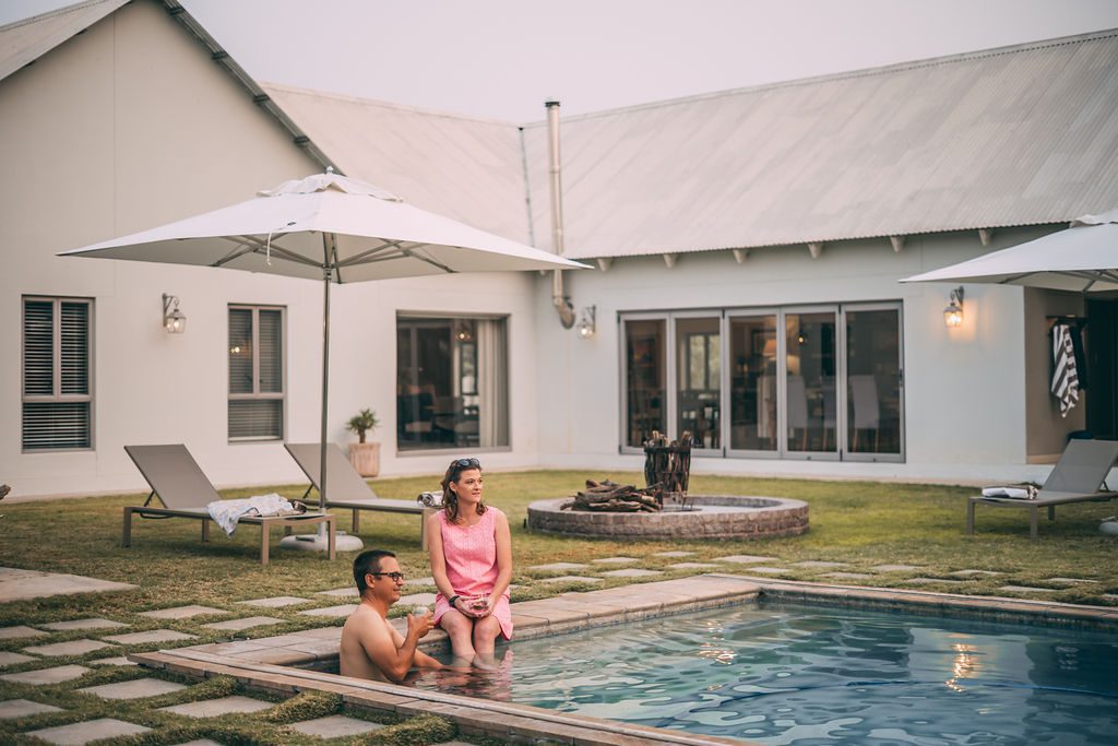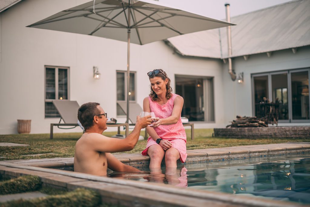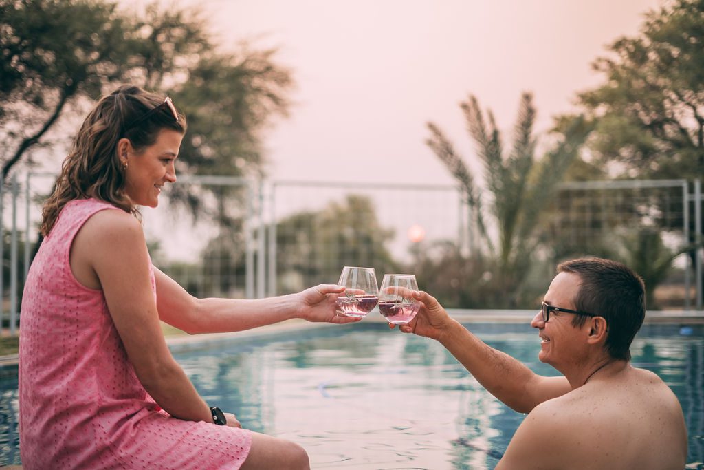 Slip into crystal-clear waters while Namibia’s wild beauty unfolds beyond the pool’s edge. Imagine floating peacefully as graceful impalas and stately kudus emerge to drink at the nearby waterhole, their elegant forms reflected in the afternoon light alongside other wildlife that call this place home.